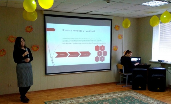 Педагог-дефектолог ДДП – Зязикова Луиза рассказала о людях с синдромом Дауна, о том, какие они позитивные и солнечные, теплые и душевные, почему именно 21 марта отмечают этот день. Также она рассказала и о знаменитых людях с синдромом Дауна и о том каких они достигают высот. Воспитанники центра с синдромом Дауна показали всем собравшимся два танца: «Бабушки» и «Мама».
