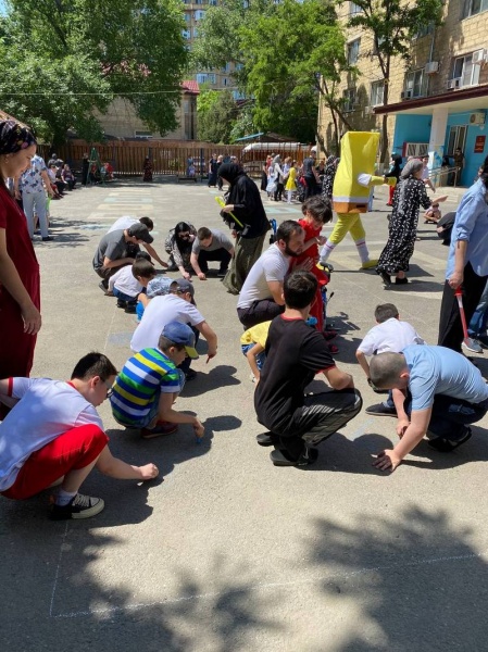 Ясная солнечная погода в Махачкале в первый летний день благоприятствовала праздничной атмосфере, и уже в 10 часов утра все воспитанники Дома дневного пребывания вместе с педагогами и воспитателями собрались во дворе для участия в праздничном музыкальном мероприятии. Танцы, игры, конкурсы, перетягивание каната, игра в баскетбол, рисунки на асфальте - все это было в программе веселого и радостного детского праздника.