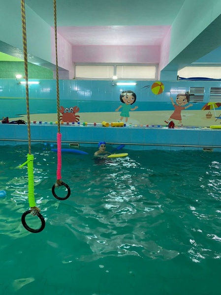 С начала мая бассейн посещает седьмая группа. Воспитанники очень ждали своей очереди и с радостью ходят на занятия.