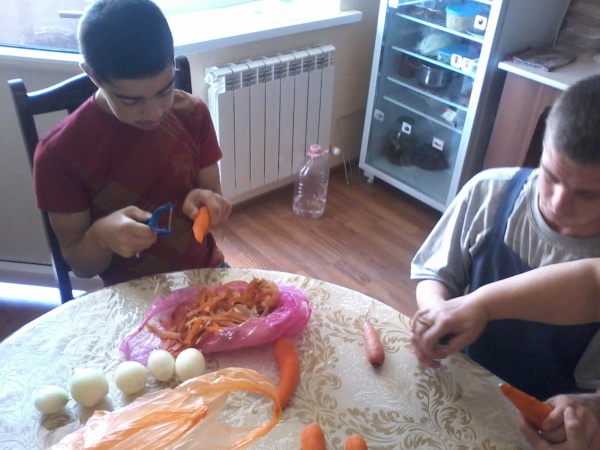 Несколько воспитанников Учебной квартиры ДРООПИ «Жизнь без слез» уже готовятся к работе в социальном кафе. Специалисты квартиры обучают молодых людей выполнять базовые операции по приготовлению пищи.