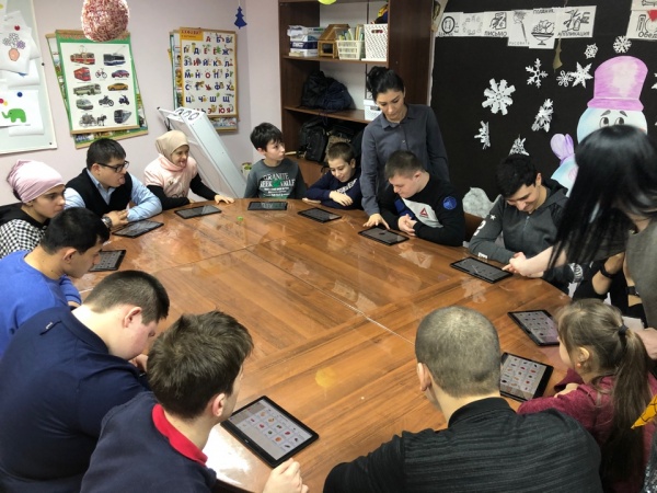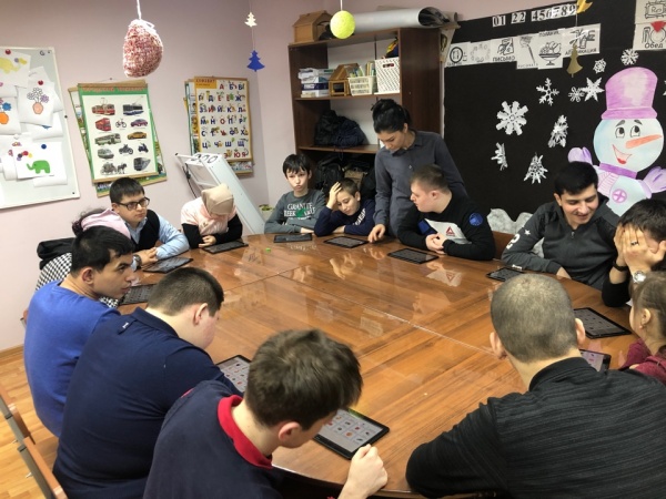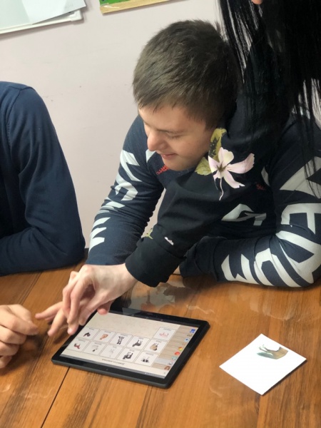 Имеющиеся планшеты используются в новом формате - как средство коммуникации с установкой программы "Аутизм. Общение." Тема очередного занятия воспитанников Дома дневного пребывания - "Природа и человек".