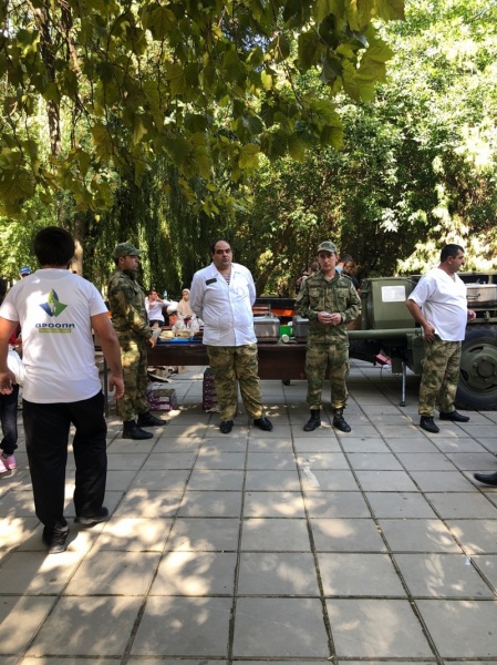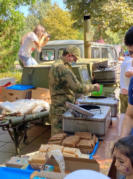 А Управление Росгвардии организовало для всех участников, зрителей и гостей пробега "Спорт для всех" настоящую походную кухню, в обеденном меню которой были - каши с тушёнкой, соки, чай и компот, фрукты, круассаны и сладости. Были ещё и пиццы от спонсоров. Все было очень вкусно!