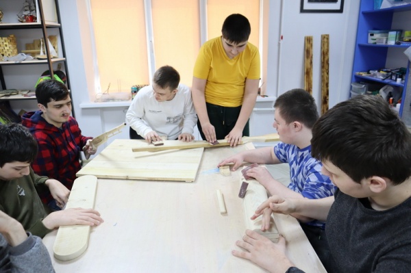 Отделение находится на третьем этаже Дома дневного пребывания и включает следующие минимастерские: деревообработка, швейное дело, компьютерная грамотность, гончарное дело, бисероплетение, домоводство, свечное дело. Занятия проходят пять раз в неделю и у воспитанников виден прогресс. Они освоили новые навыки и улучшили имеющиеся.