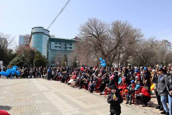 Акция «Зажги синим» завершилась флешмобом с синими шариками.