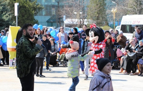 В акции «Зажги синим» приняли участие представители общественных и благотворительных организаций. В числе зрителей и активных участников, конечно же, были родители «особенный» детей.