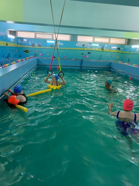 С начала мая бассейн посещает седьмая группа. Воспитанники очень ждали своей очереди и с радостью ходят на занятия.