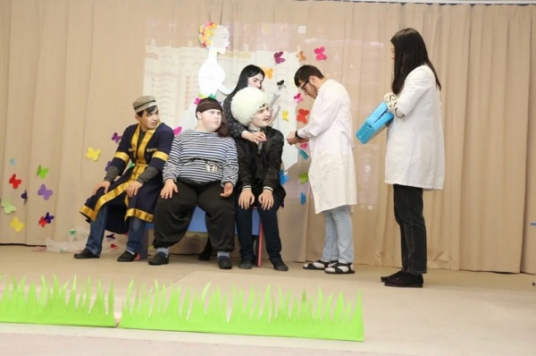 В праздничном представлении особенно яркими и интересными были инсценировки в исполнении детей по популярным детским произведениям и сказкам. Это - "Курочка Ряба", "Чиполлино", "Терем-теремок", "Буратино". Юные артисты очень старались хорошо исполнить свою роль, ведь в зрительном зале сидели их мамы и папы, которым они посвящали свои выступления.